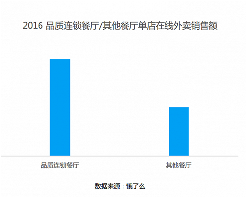 2016年,在線外賣平臺餓了么季度客單價提升19%,與此同時品質連鎖餐廳入駐外賣平臺數量大幅提升,同時營業額相比普通餐廳也較高。