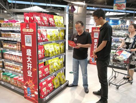 豬司令(左一)視察蹄勁在盒馬鮮生的展位
