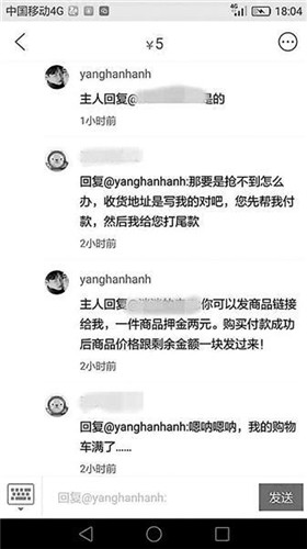 “你到時候把商品的鏈接給我,然后就是你的收貨地址,每件商品你要給我2塊錢的押金,到了11號那天,我來幫你搶東西,然后付款,沒搶到的話我會退押金,搶到的東西會直接由賣家郵給你,我把交易成功的截圖發給你之后,你給我付尾款就行了?!边@位出租“購物車車位”的商家說,之所以每件商品需要支付2元的押金,是為了防止違約。