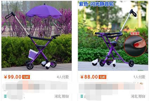原標題:共享遛娃小車現身上海押金99元 網上88元可買同款