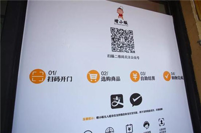 在無人超市的玻璃門上有二維碼,用微信掃描后會提示關(guān)注無人超市公司的二維碼,關(guān)注后下面有“我要開門”的應(yīng)用,點(diǎn)擊獲得一把“鑰匙”就可以開門。