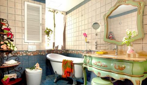 法式風格給人印象最為深刻之一就數那清新浪漫,一直講究做工精細的法式家具,毫無保留得把那種貴族的氣質彰顯出來,善用雕花的家具裝飾也會帶來典雅的氣息,因此在衛生間中見到帶有雕花臺盆也就不足為怪了,綠色的選擇可以讓衛生間的空氣清新很多,那白色獨立式貴妃浴缸的使用,更顯得潔凈許多,白與綠的合理搭配使得衛生間更加的舒適許多,還有那墻角置物架成為鮮花以及雜物的棲息之地,從而衛生間更顯得整潔許多。