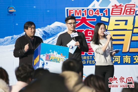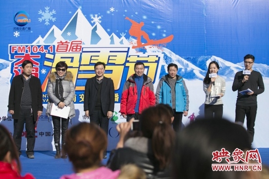 準備工作已經就緒,車友們已經按捺不住要滑雪的心情了,在滑雪正式開始之前,1041《MORE FUN 音樂》主持人王哲和《馬路歡樂派—早間》主持人彎彎,禹州市大鴻寨臥佛山旅游開發有限公司總經理王鋒偉先生也來給大家加油打氣了。