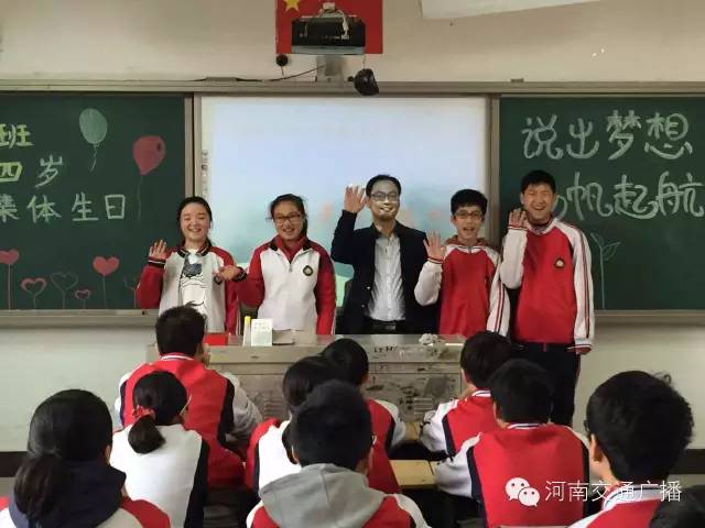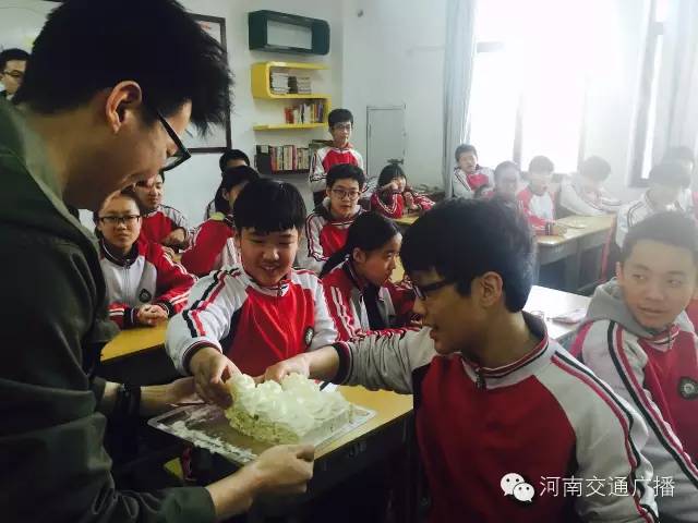 班主任李少鋒老師很激動,他說,沒想到一條小小的微信,竟然真的請到了河南交通廣播主持人來給同學們送蛋糕,他說,這樣的班會開得很有意義,讓孩子們學會分享,是與同學們心貼心的交流。