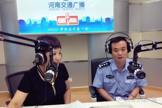 6月16日上午,鄭州市公安局交巡警支隊竇立勇支隊長帶領車管所、交通科研所、法制、交通、事故等科室負責人做客河南交通廣播《南方談交通》節目,與廣大車友就交通出行話題實時互動。