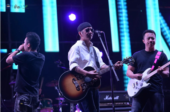 為了讓所有的樂隊順利演出,主持人丁適在后臺一站就是十幾個小時,曬到鼻尖通紅。