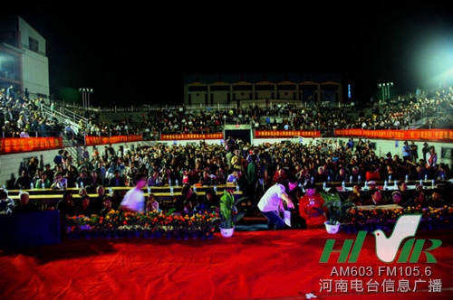 昨天(9月28日)晚上,河南人民廣播電臺2012“中原戲迷擂臺賽”8月月冠軍賽暨迎雙節茅臺鎮“小康酒杯”戲曲大賽在開封尉氏體育中心開賽。