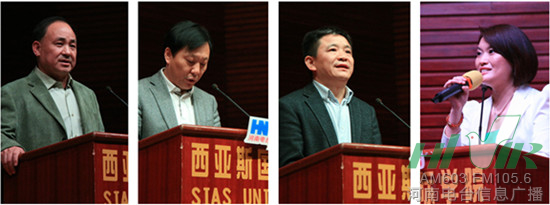 左起:鄭州大學西亞斯國際學院黨委書記費鶴祥 河南人民廣播電臺副臺長李海軍