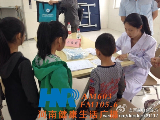 “名醫中原行”活動由河南人民廣播電臺文明辦主辦,文明辦喬紅巖、信息廣播副總監陳德年、《名醫在線》的編輯記者、節目組志愿者一同參加活動。河南省人民醫院耳鼻喉科主任王琳和口腔科醫生張章為學生們義診。