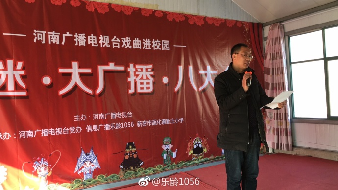 天氣雖然寒冷但現場氣氛熱烈。伴著熱烈的掌聲,河南廣播電視臺信息廣播總監辦主任沈劍波致辭,名主持周迪上場,新密市超化鎮新莊小學校長高豐朝致辭,活動正式開始!