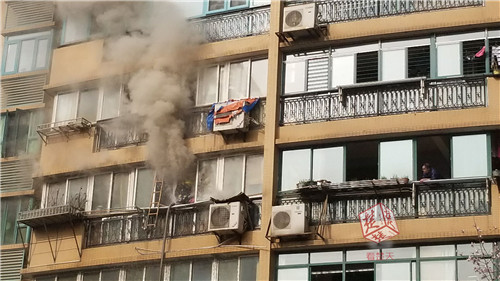 平時安靜的武漢市東湖花園,下午2點08分,一棟住宅樓突發火情。