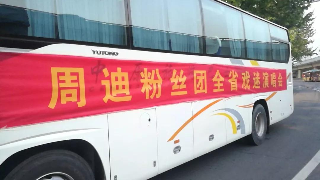 早上8點,“周迪粉絲團”乘坐大巴車從廣播大廈出發。