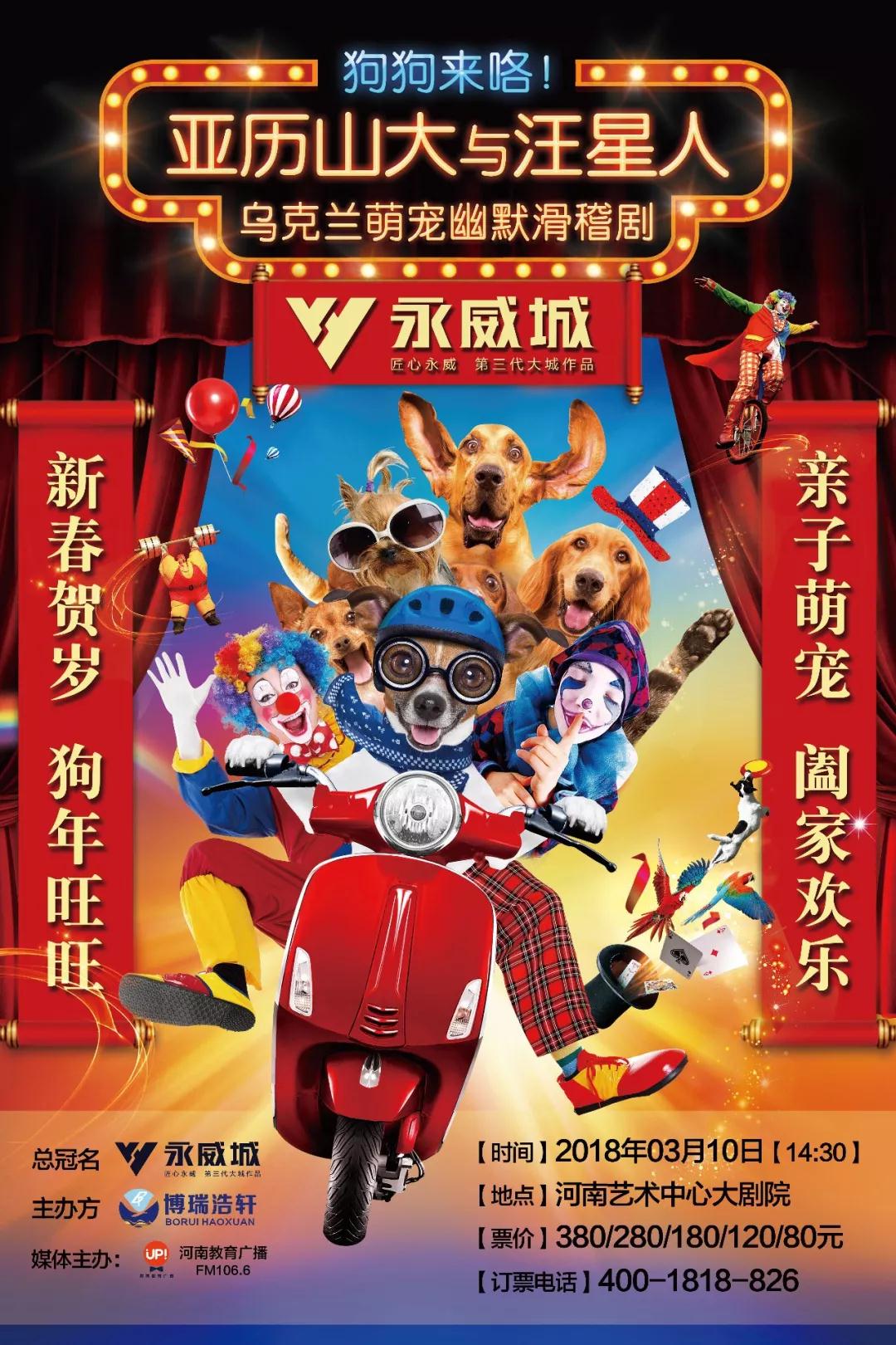 狗年來啦!狗年當然要看汪星人主演的劇啦。2018年3月10日(周六)河南藝術中心開年大戲——烏克蘭萌寵幽默滑稽劇《亞歷山大與汪星人》首次來華,空降鄭州。一起喜樂過旺年啦!