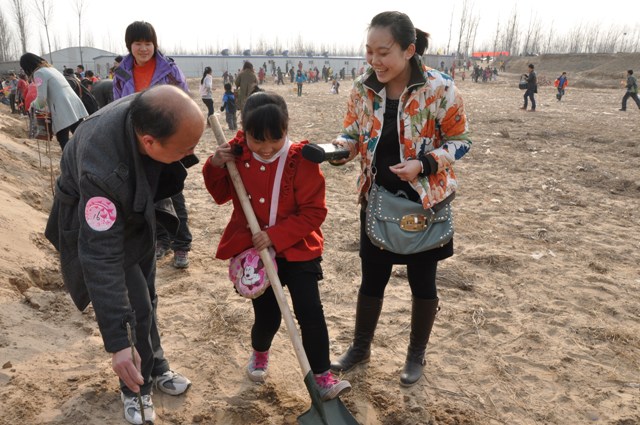 植樹節前夕,教育廣播帶領20組聽眾家庭,來到黃河岸邊種植樹苗。一到達種植地點,面對大片的沙漠化土地,教育廣播總監張建功談起了這次活動的初衷,“舉目望去,周圍全是沙灘,可以想到很多沙漠化的土地。我們教育廣播有責任讓孩子知道,愛護我們的家園從小做起,從我做起,從種植每一顆樹苗做起?!?0組聽眾家庭將一顆顆充滿希望的果樹苗和自己的心愿卡一同種下。家庭代表說,“這個活動非常有意義,能夠讓小孩子跟小樹一起成長,把這心愿埋到樹下面。在他成長過程中有一個這么好的回憶,我們覺得非常高興?!?/p>