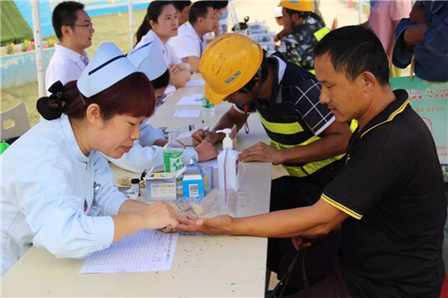一大早,五大醫院的白衣天使們,就來到了中建三局鄭州航空港棚戶區改造的施工現場。開始準備工作,希望能夠更好地為建筑工人們做健康檢查。