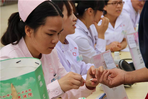 義診現場前來就診的群眾將內科、眼科、中醫科的專家們圍了個水泄不通,專家們一方面為群眾進行免費測血糖、測血壓,一方面耐心細致地解答他們的問題。當地不少工友都感慨地說:“在單位門口就能看上三甲醫院的專家就是好啊!”