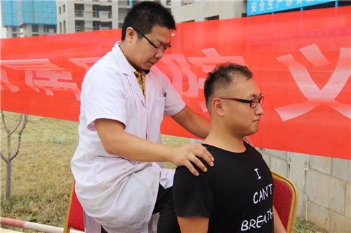 建筑工人平時工作勞累,肩頸都需要放松,看我們的醫生按摩技術也是灰常得高呢!