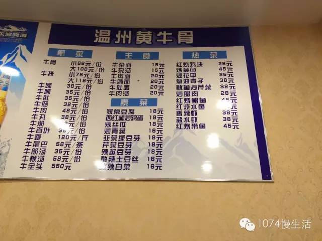 瞅瞅這菜單,牛身上的所有部位全齊了!牛骨、牛排、牛腩、牛蹄、甚至還有牛全頭……有的爛軟,有的勁道,供君挑選,就看您好哪口兒啦~!