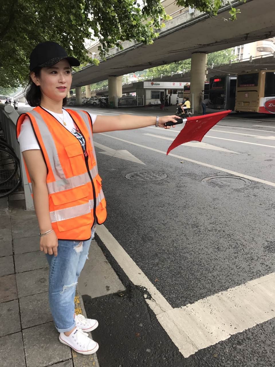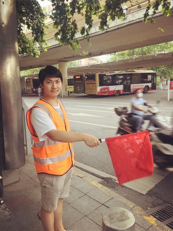 采編播人員怎么出現在了這里?難道是交通協管員?來看看今天的紫荊山金水路口,魅力881的DJ們輪流出現。