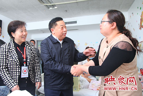 映象網訊(記者 王寬 文/圖)4月23日上午,河南省援疆工作前方指揮部總指揮劉金山、河南省紅十字會黨組書記、常務副會長趙國新一行來到河南省胸科醫院病房,看望來自新疆哈密地區的10名先心病患兒及家屬。這10名患兒是河南省紅十字會開展“豫新緣紅十字愛心行動”的第二批救助對象,他們剛剛順利實施了手術治療。