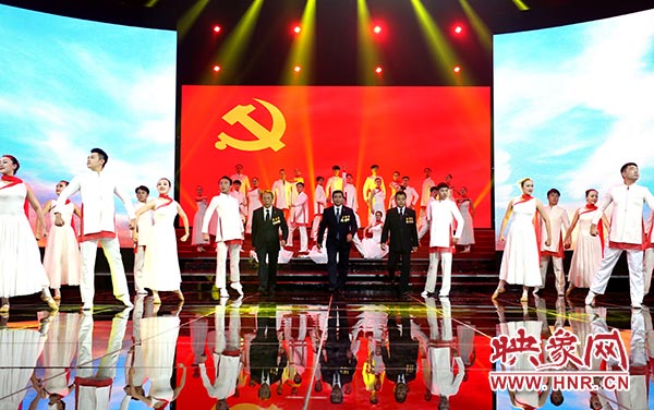 演出伊始,今年當(dāng)選河南省出席黨的十九大代表的三位勞模——信陽市潢川縣駐鄭州農(nóng)民工黨支部書記黃久生、中國平煤神馬集團十三礦掘進二隊隊長王羊娃、中信重工機械股份有限公司重型裝備廠大班長劉新安邁著堅定的步伐走上舞臺,抒發(fā)對黨的滿腔深情,表達(dá)了全省職工喜迎黨的十九大、立足崗位建功立業(yè)的決心。