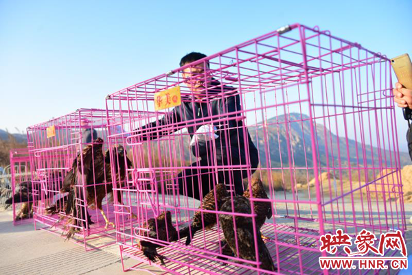 下午16時許,車隊到達了鄭市具茨山頂峰。16時10分,大家將鐵籠子一一卸下,擺放在路面上。