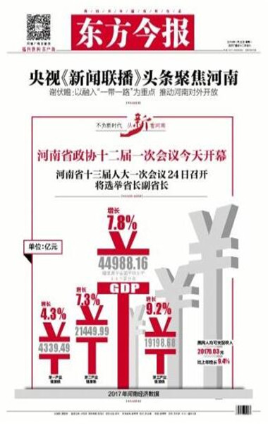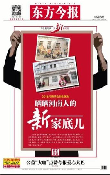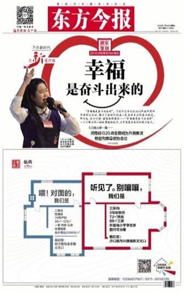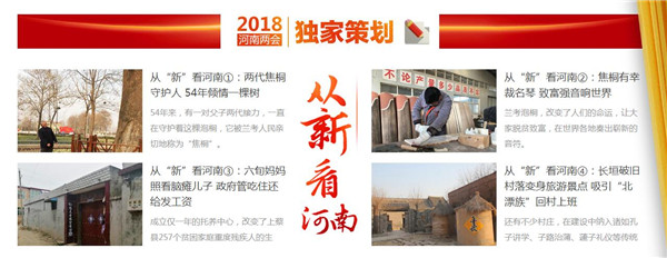 同時,東方今報還推出2018河南兩會特別策劃——“幸福都是奮斗出來的”,側重報道正在奮斗且勵志的社會中堅力量,一個個鮮活的人物故事勉勵我們,為中原更加出彩而努力奮斗。截至目前已刊登四篇報道,分別是《幸福是奮斗出來的系列報道之(1) 河南妞兩次為“彭媽媽”表演 特邀列席縣政協(xié)會議》《幸福是奮斗出來的系列報道之(2) 90后辭年薪二十萬工作創(chuàng)業(yè):我的心愿是“藝術+”》《幸福是奮斗出來的系列報道之(3) “海歸農夫”師鵬飛:現(xiàn)代農場放飛創(chuàng)業(yè)夢》。