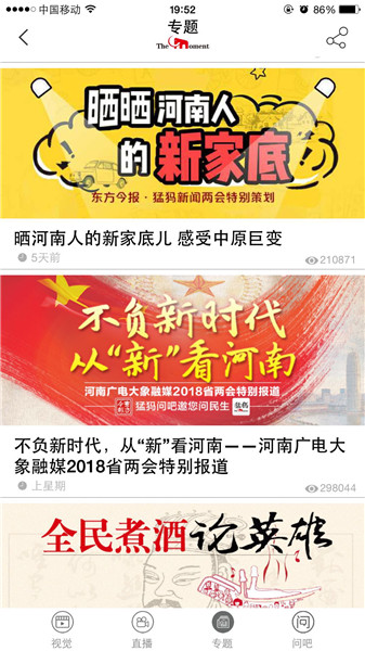 映象網訊(記者 秦雯)看兩會最熱最新鮮,看百姓關注,看代表委員風采,看各界如何解讀報告。1月22日起,河南進入2018兩會時間。大象融媒帶著問題聚焦兩會,帶著答案回應網民。其間,大象融媒旗下所屬各媒體大顯身手,貢獻出大量精彩的報道,直播、高清圖、系列策劃及H5產品等,這些內容一經推送,就吸引百姓高度關注,有些板塊更是形成“兩會熱門話題”和“網絡熱詞”,被網友分享,引代表委員熱議。