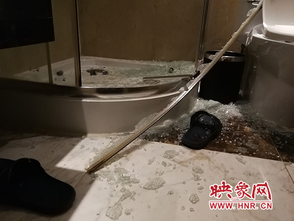 姜先生說,2月28日下午,他入住鄭州某酒店的520房間。5點左右,他從淋浴房內洗完澡準備出來,可就在他把浴室玻璃拉門打開的那一剎那間,突然聽見“砰”的一聲巨響。玻璃碎片四處橫飛,將他的手部、腕部及腳部等處扎傷,頓時鮮血直流。