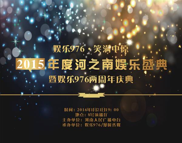 2016年1月21日,8號演播廳,河之南娛樂盛典2015年度頒獎典禮娛樂976兩周年慶典即將呈現!