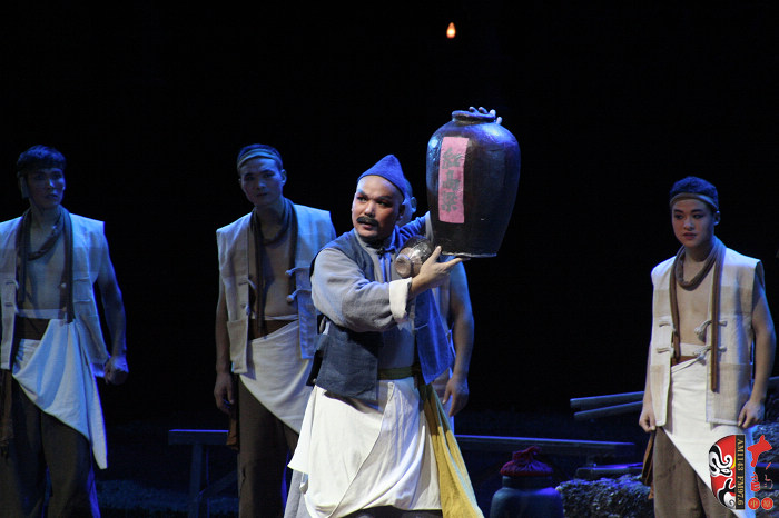 本劇以蓬蓬勃勃、充滿野性、有著旺盛生命力的紅高粱為意像,以九兒和十八刀的愛恨情仇為主線,描繪了上個世紀三、四十年代,先民們敢愛、敢恨、敢生、敢死的自由精神與生命氣度以及他們對入侵者不惜用鮮血和生命抗爭、可歌可泣而又悲壯慘烈的過程。最后九兒用高粱酒做炸藥,引爆了日本人的軍火車,軍火車的爆炸又扎爆了熟透了的高粱米,滿天都飄灑著絢麗的高粱花——這是他們的鮮血之花、靈魂之葩,更是他們精神的升華。