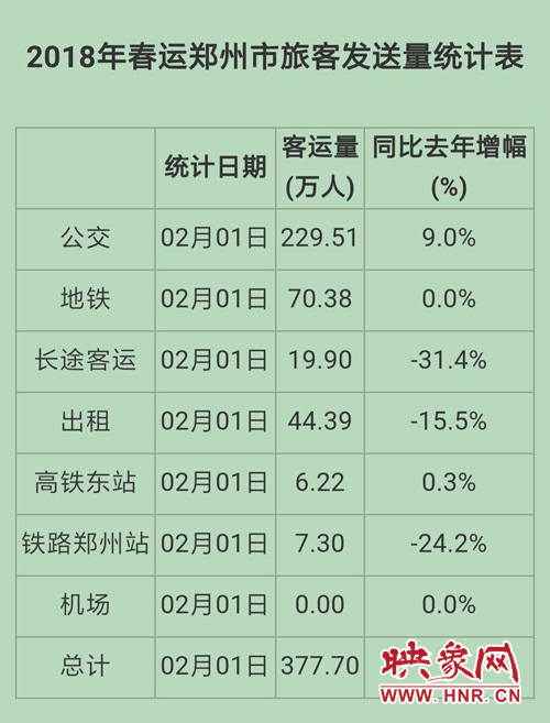 2月2日,映象網記者從鄭州市交通委獲悉,春運第一天鄭州公交、高鐵客運同比增長,客運、出租車呈下降趨勢。
