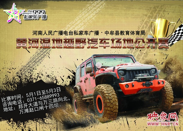 私家車999“2015黃河濕地越野挑戰賽”將在五一黃金期火爆來襲,華中地區最大的越野賽事,國內外知名車手現場挑戰4.5公里泥濘坎坷賽道,驚險刺激的比賽等著你!