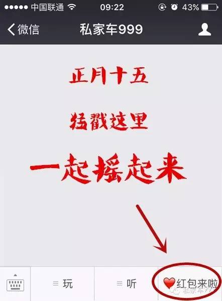 私家車999微信公眾號開始“搖紅包”