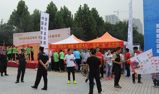 河南省體育彩票管理中心黨支部書(shū)記王海新也來(lái)到了徒步大會(huì)現(xiàn)場(chǎng)檢查體彩宣傳展示和銷(xiāo)售工作,并為體彩隊(duì)參賽選手加油助威。王海新介紹說(shuō),習(xí)總書(shū)記在今年8月27日會(huì)見(jiàn)全國(guó)體育先進(jìn)單位和先進(jìn)個(gè)人代表時(shí)的重要講話(huà)中強(qiáng)調(diào):“體育承載著國(guó)家強(qiáng)盛、民族振興的夢(mèng)想。體育強(qiáng)則中國(guó)強(qiáng),國(guó)運(yùn)興則體育興。要把發(fā)展體育工作擺上重要日程,精心謀劃,狠抓落實(shí),不斷開(kāi)創(chuàng)我國(guó)體育事業(yè)發(fā)展新局面,加快把我國(guó)建設(shè)成為體育強(qiáng)國(guó)。”河南體彩人要深入學(xué)習(xí)領(lǐng)會(huì)習(xí)總書(shū)記重要講話(huà)的精神實(shí)質(zhì),努力實(shí)現(xiàn)我省體育彩票市場(chǎng)的健康可持續(xù)發(fā)展,籌集更多的公益金,為體育事業(yè)和社會(huì)公益事業(yè)提供更充足的資金保障。同時(shí),河南體彩人自身也要加強(qiáng)體育強(qiáng)國(guó)意識(shí),在加強(qiáng)自我健身鍛煉的同時(shí),堅(jiān)持全民健身和全民健康深度融合,通過(guò)不同的形式,鼎力支持我省群眾體育和全民健身事業(yè),為加快體育強(qiáng)省建設(shè)和體育強(qiáng)國(guó)夢(mèng)的盡快實(shí)現(xiàn),做出體彩人的積極貢獻(xiàn)!