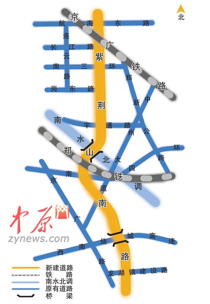 紫荊山路南延工程,指的是紫荊山路航海路到龍湖鎮建設路段,工程位于鄭州市中心城區東南部,規劃為南北向城市主干道,全長10公里多,預計將在2016年建成通車。