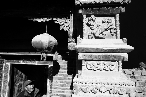 這3座門樓最吸引人的,是保存完整的磚雕:鏤空的麒麟、飛舞的鳳凰騰云駕霧,惟妙惟肖,各種吉祥花飾、福壽字刻,工藝精美。門樓上的木雕,圖案以花卉為主,保存完整,工藝也可圈可點(如上圖)。