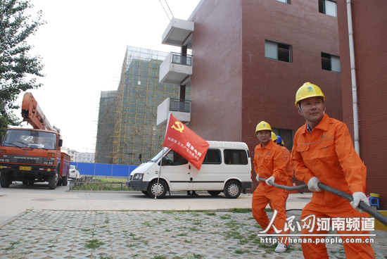 人民網南陽8月3日電 烈日炎炎,揮汗如雨,為確保第七屆全國農運會順利舉辦,實現農運會供電“電網安全零事故、保電現場零停電、供電設備零缺陷”為目標,南陽市電力公司職工頂著高溫酷暑緊張施工。