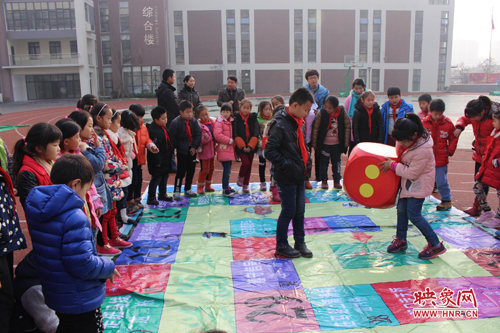 映象網教育頻道訊(記者 劉俊 通訊員 何利敏)“紅燈停,綠燈行,向前2步……”“阻止家人酒后駕車向前3步……”在鄭州市高新區五龍口小學的操場上,一場別開生面的“下棋”比賽正在進行。在一張巨無霸“交通安全飛行棋”棋盤上,同學們扮作“棋子”,在棋盤上的小方格之間“穿梭”。一道道交通安全知識題目“攔”在“棋子”面前,答對問題方可繼續“前行”。
