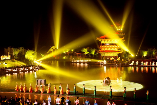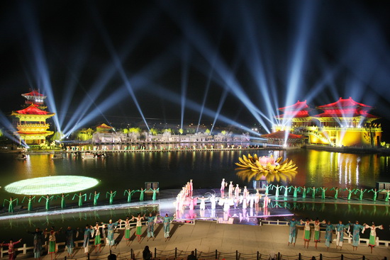 整個演出運用大量的科技手段,制造出夢幻的效果,把人們的記憶拉向一千多年前的那個輝煌朝代。