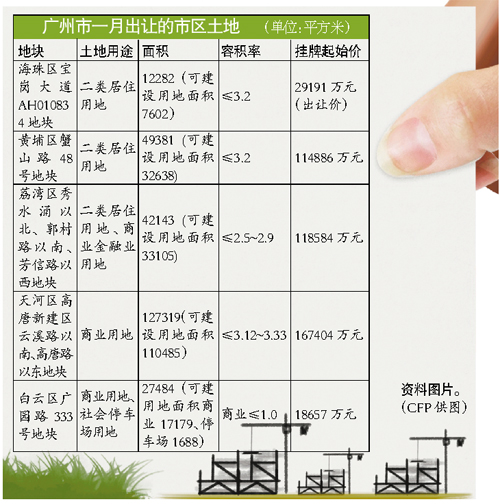 而根據以往數據,廣州1月底即將入市的土地達到7宗,總起拍價高達55.8億元,其中有五宗地位于中心城區,備受關注。記者發現,去年1月廣州土地出讓金僅為13.6億元。若以起拍價計算,廣州今年1月拍地收入將達到去年同期4倍。