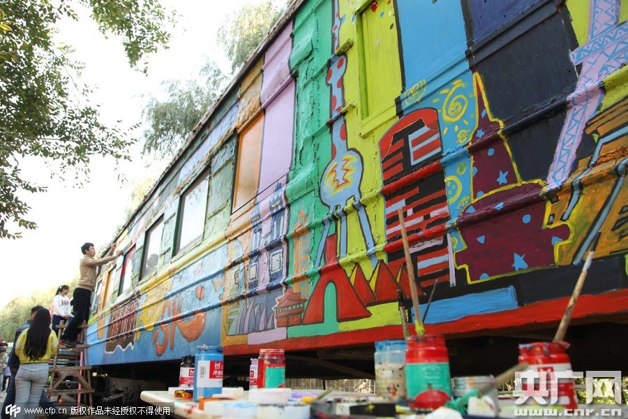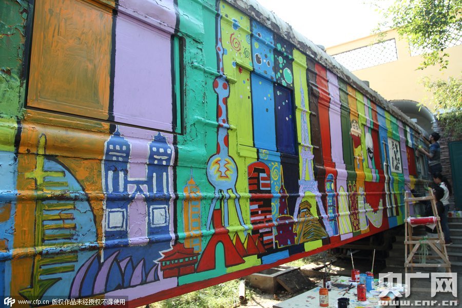 2015年10月10日,鄭州四禾美術中學充分發揮美術生的優勢,對火車車身1進行涂鴉改造,使火車宿舍看起來更加漂亮。