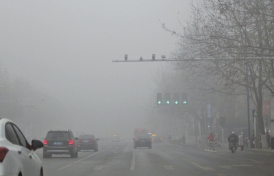 1月10日,霧霾鎖城,鄭州市區能見度很低。