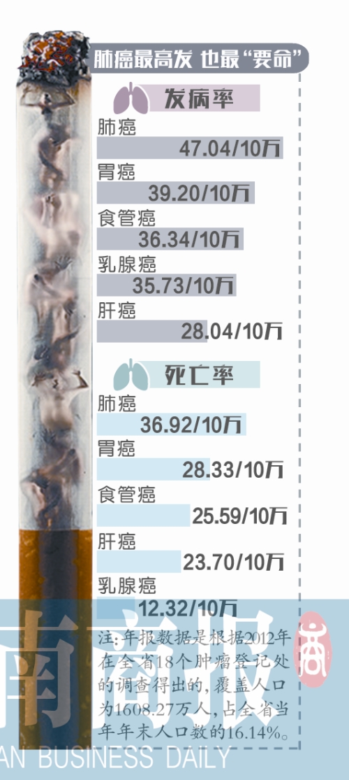 《2015年河南省腫瘤登記年報》出爐 肺癌發病死亡率居首 制圖/鄭萌