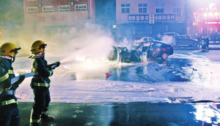 “車上的人咋不下來呢?難道是撞暈了?”帶著一連串的疑問,張元恒迅速拿起店里的滅火器跑到起火的黑色轎車前,并邊跑邊招呼店員們來幫忙。