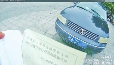 昨日上午10時許,鄭州交警一大隊指揮室機動車緝查布控系統突然報警:金水路上,一輛車牌號為豫A3GV××的黑色帕薩特轎車為報廢車,該車馬上到達金水路與民航路交叉口。
