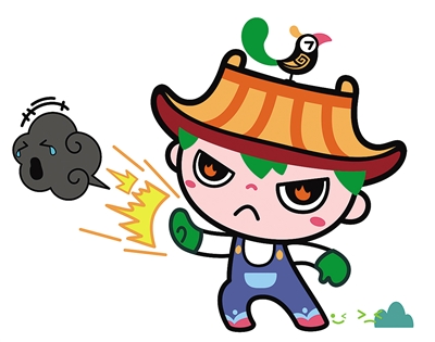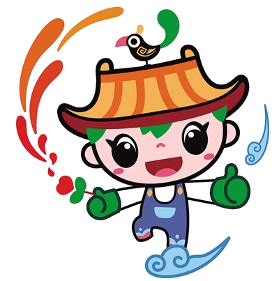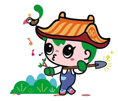 吉祥物“園寶”整體形象是一位朝氣蓬勃的小園丁,造型以傳統元素融匯時尚風格,集建筑、山水、植物、動物、文化藝術等園林要素于一身;頭頂的帽子形似中式傳統建筑屋頂,象征中國古典園林建筑,代表“園”;蔥郁的頭發和雙手,胸部、腿部圖案、色彩等,象征山水花木,代表“林”;身體五彩繽紛,臉部笑容明媚親和,右手豎起點贊的大拇指;左手執新綠萌發的葉芽,象征園林工作者辛勤耕耘,讓華夏大地永葆綠水青山。