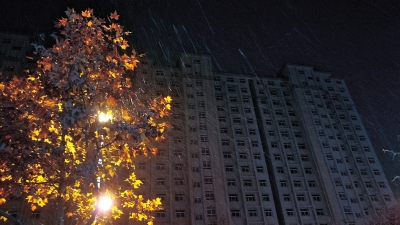 本報漯河訊前日最高溫尚是18℃,沒想到昨日的最低溫已降至-1℃,漯河市民實實在在感受了一把“斷崖式”降溫。昨日中午,漯河市已經開始飄落零星的雪花,到了下午1點左右,飄飄揚揚的大雪從天而降,宣告著該市今冬初雪的來臨。