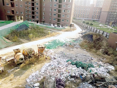 “豐慶路與國基路交叉口附近的清華·紫光園二期工地建筑垃圾無遮蓋網,生活垃圾沒人管,工地內大小便隨處解決,我們緊鄰小區苦不堪言。王女士曾多次向物業反映該情況,物業解釋說:“由于二期還沒有交工,我們也干涉不了二期工地。