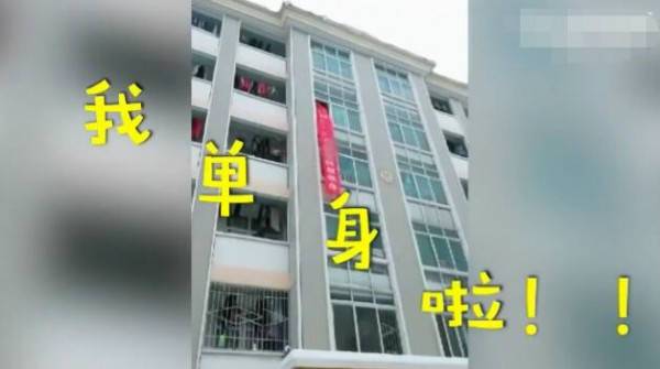 1月7日,河南信陽師范學院的一位女同學,在宿舍陽臺上掛5米條幅來慶祝自己恢復單身。